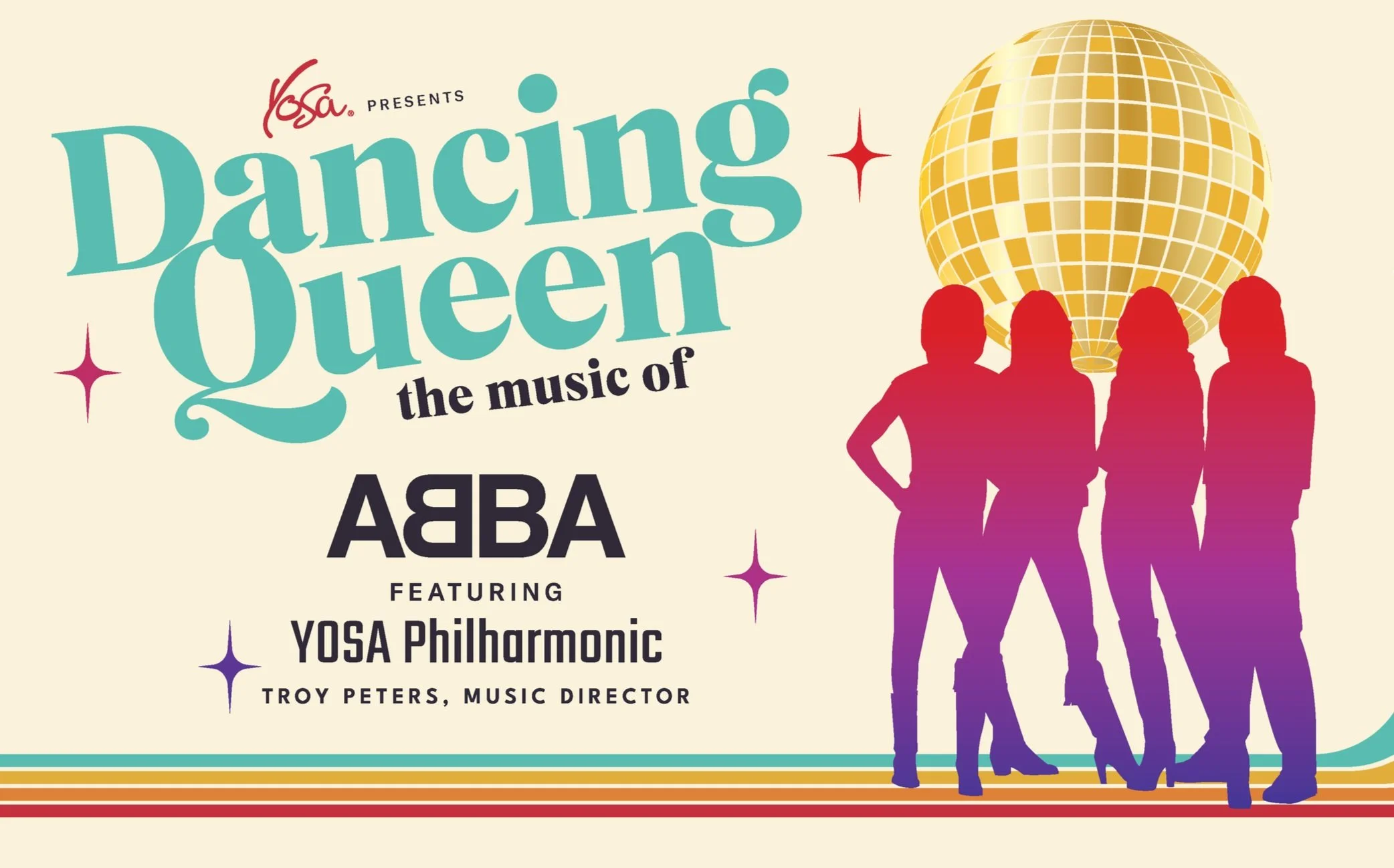 “YOSA Presents Dancing Queen: The Music of ABBA” will be on Saturday, March 15, 2025, at 8:00 pm at the Tobin Center for the Performing Arts.
