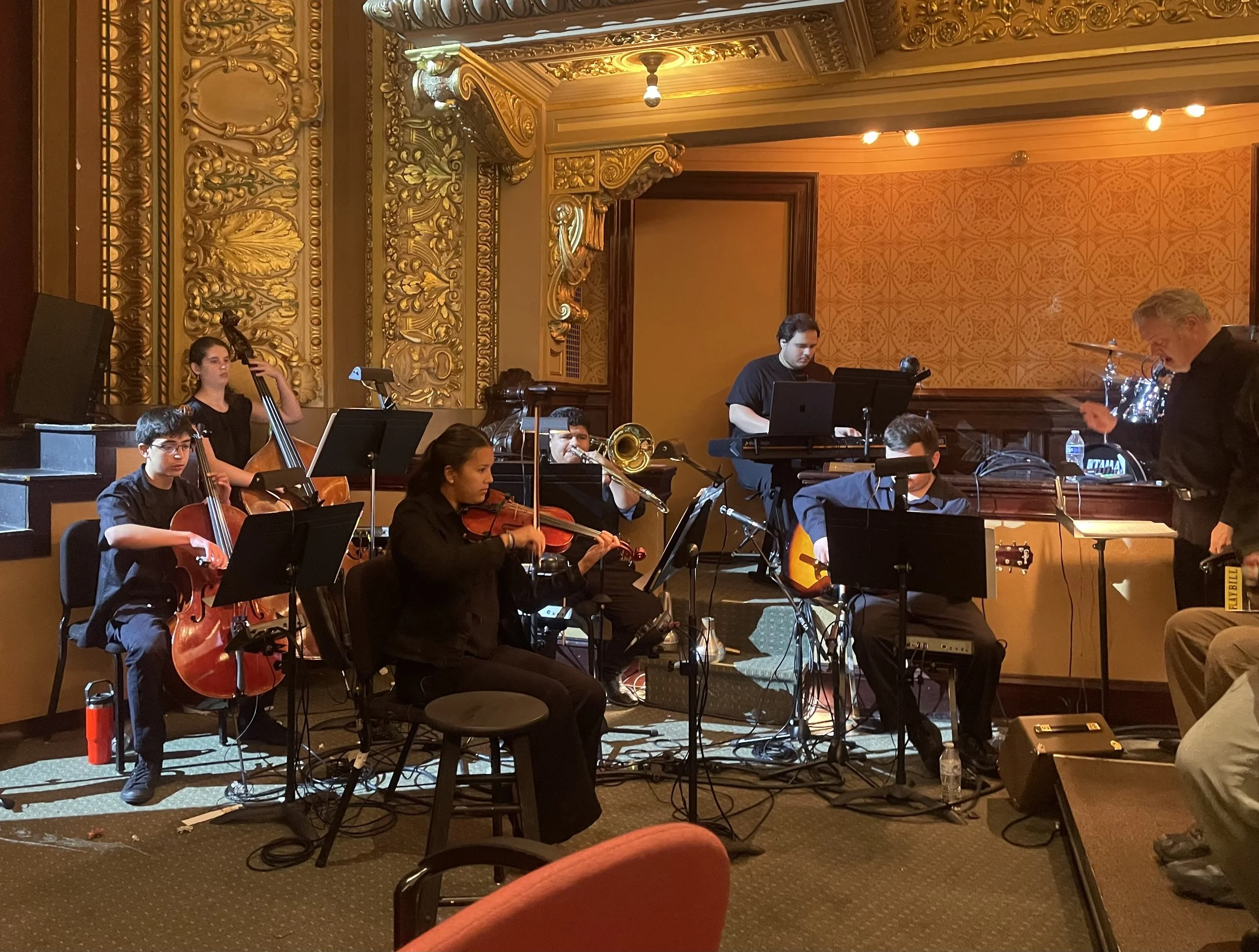YOSA musicians performing as pit orchestra for Hadestown: Teen Edition